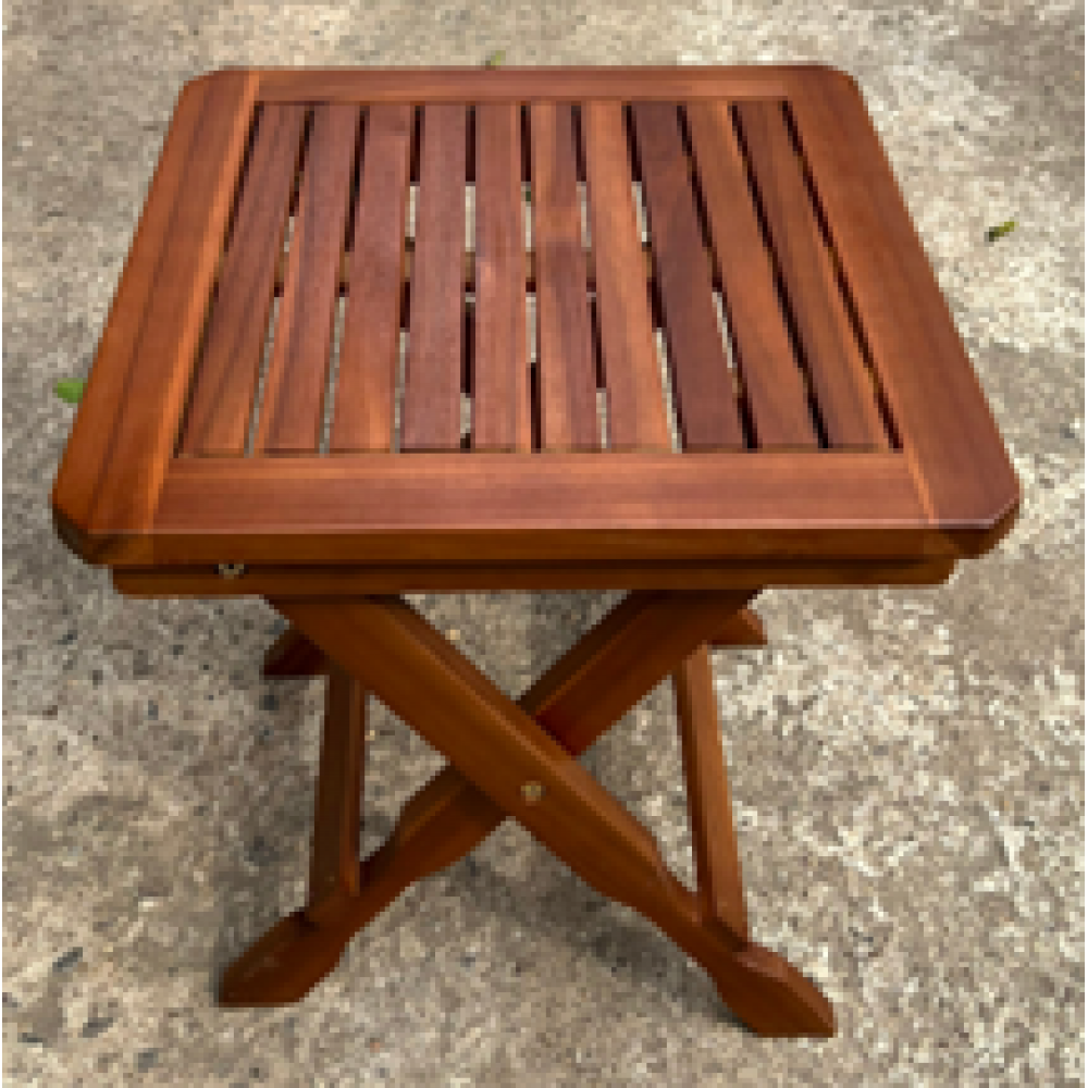 Деревянный столик к шезлонгам хорошо будет смотреться в любом интерьере Деревянный каркас термодерево темного цвета Размер: 40х40х43,5 см Коробка: Стол: 590х425х80мм Вес: 4кг