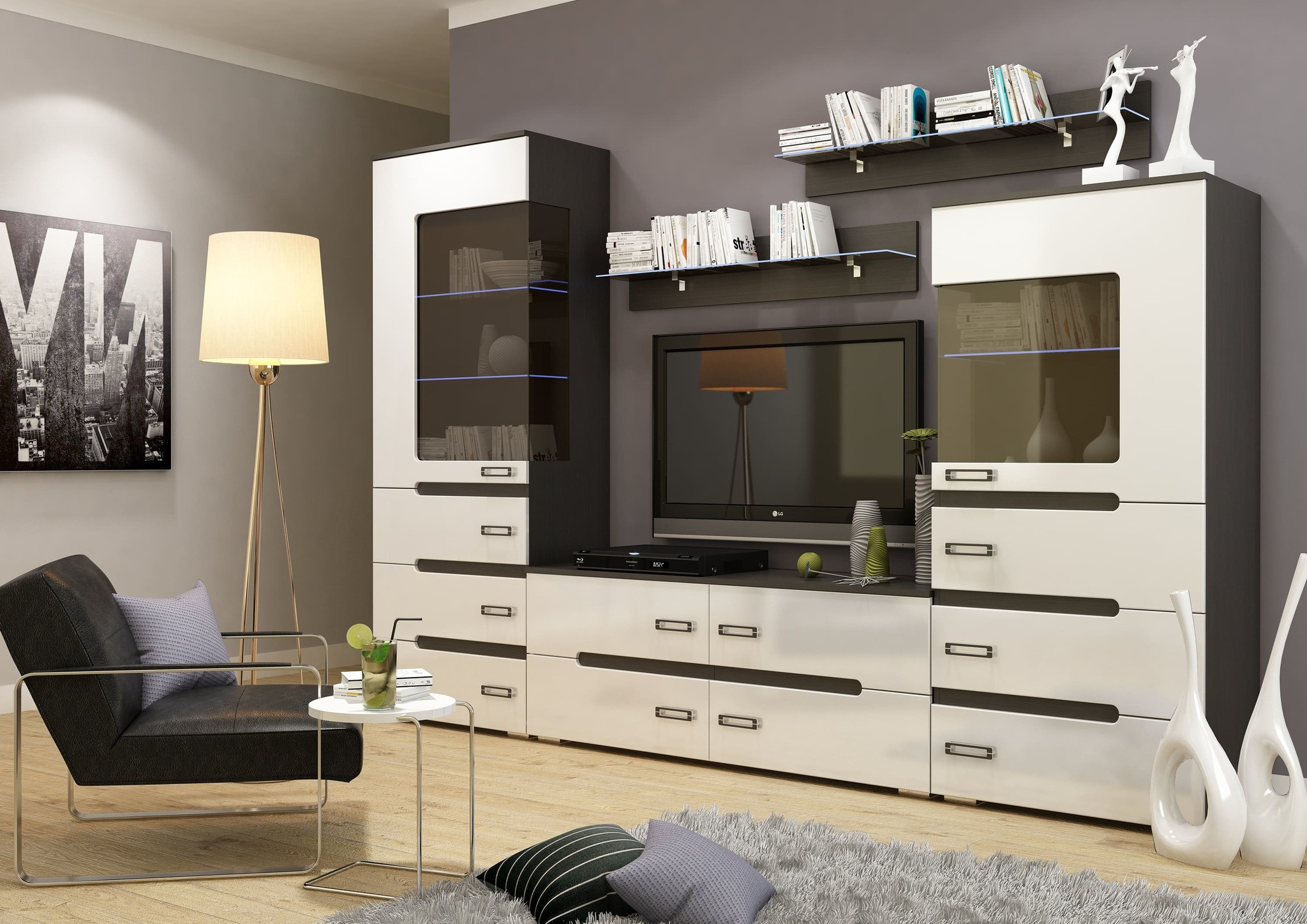Гостиная Верби Венге/МДФ Белый Глянец (Ш-2768 х В-1900 х Г-420 мм)