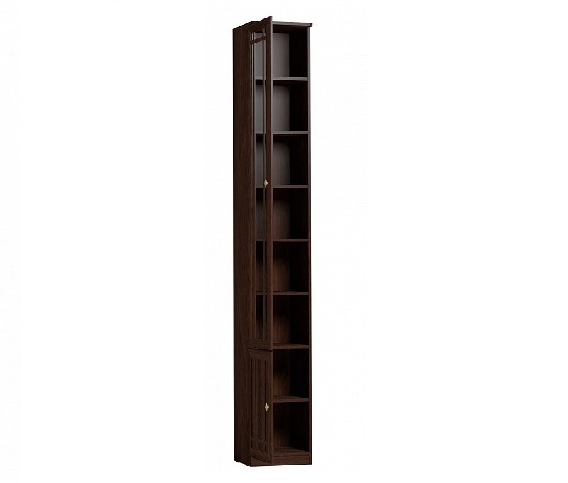 Хотите купить узкий книжный шкаф в классическом исполнении? Модель Sherlock 311 - то, что Вы искали! Это высокий шкаф для книг, который можно установить в помещении с высотой потолка не менее 240 см. Глубина модуля составляет всего 34 см, а значит Вы сможете организовать хранение книг и других вещей даже в малогабаритном помещении. За комбинированным стеклом фасадом скрывается комплект полок, которые регулируются по высоте. Это позволит Вам расположить литературу различного формата в одном месте и соблюдать порядок. Шкаф будет гармонично смотреться в комплекте с другими книжными шкафами и витринами из коллекции Sherlock. Особенности ЛДСП 16 мм, профиль МДФ, кромка ПВХ тонированное стекло 4 мм декор "орех" регулируемые по высоте полки обязательное крепление к стене за подвесы дверца открывается налево